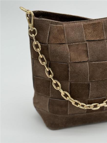 BOLSO PIEL SERRAJE CUADROS TAUPE