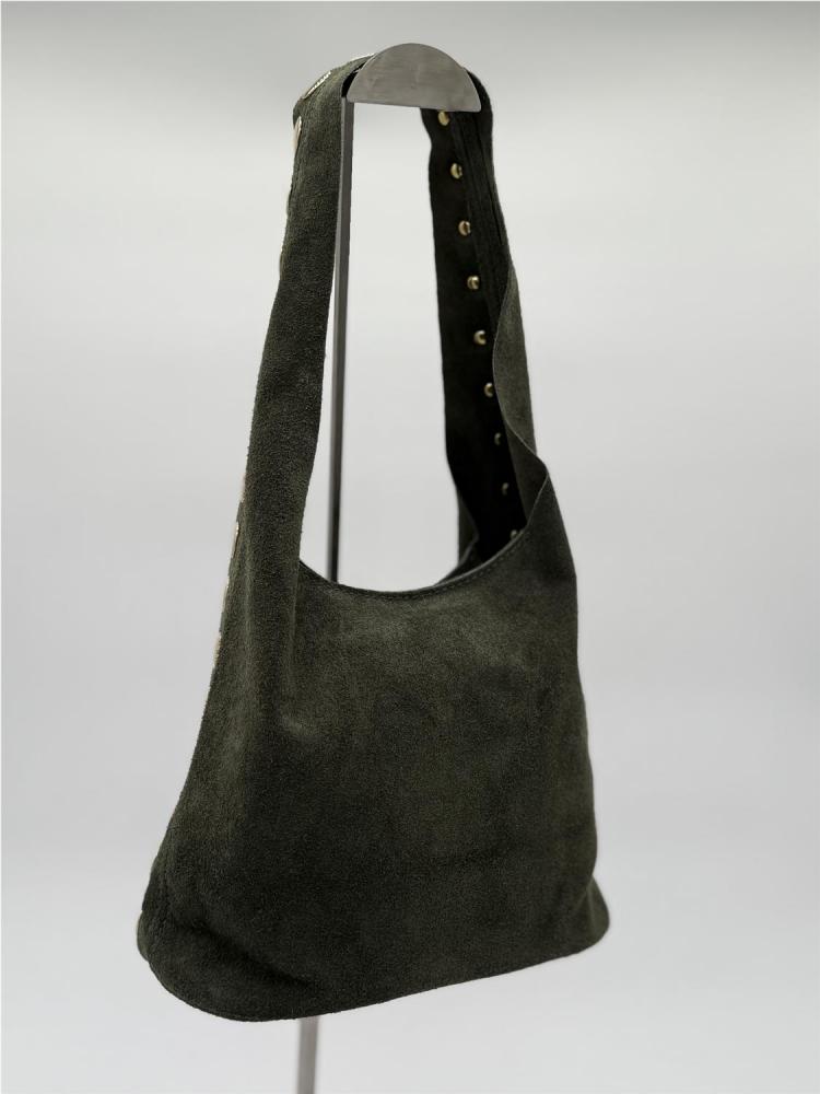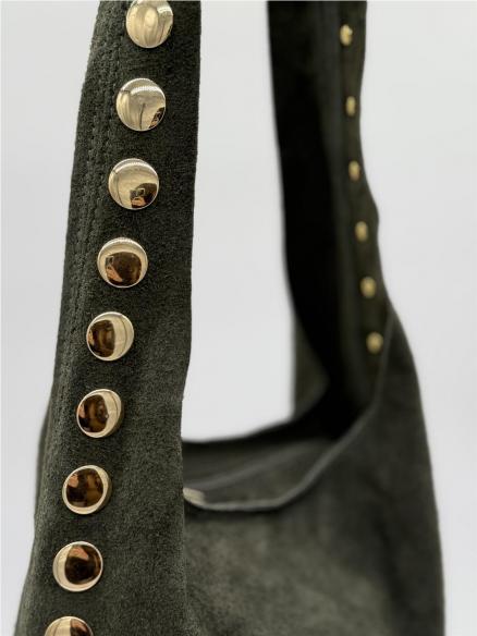BOLSO PIEL SERRAJE TACHAS VERDE