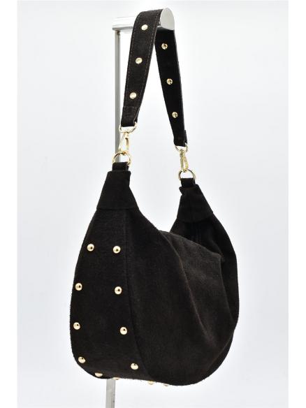 BOLSO PIEL LUNA TACHAS MARRON