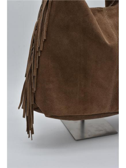 BOLSO PIEL SERRAJE FLECOS TAUPE
