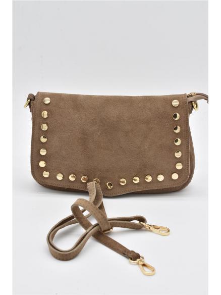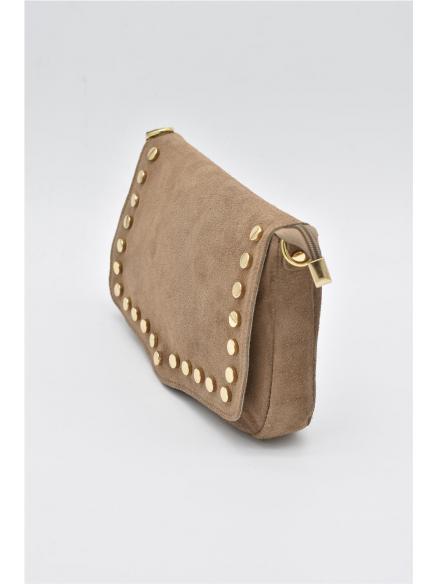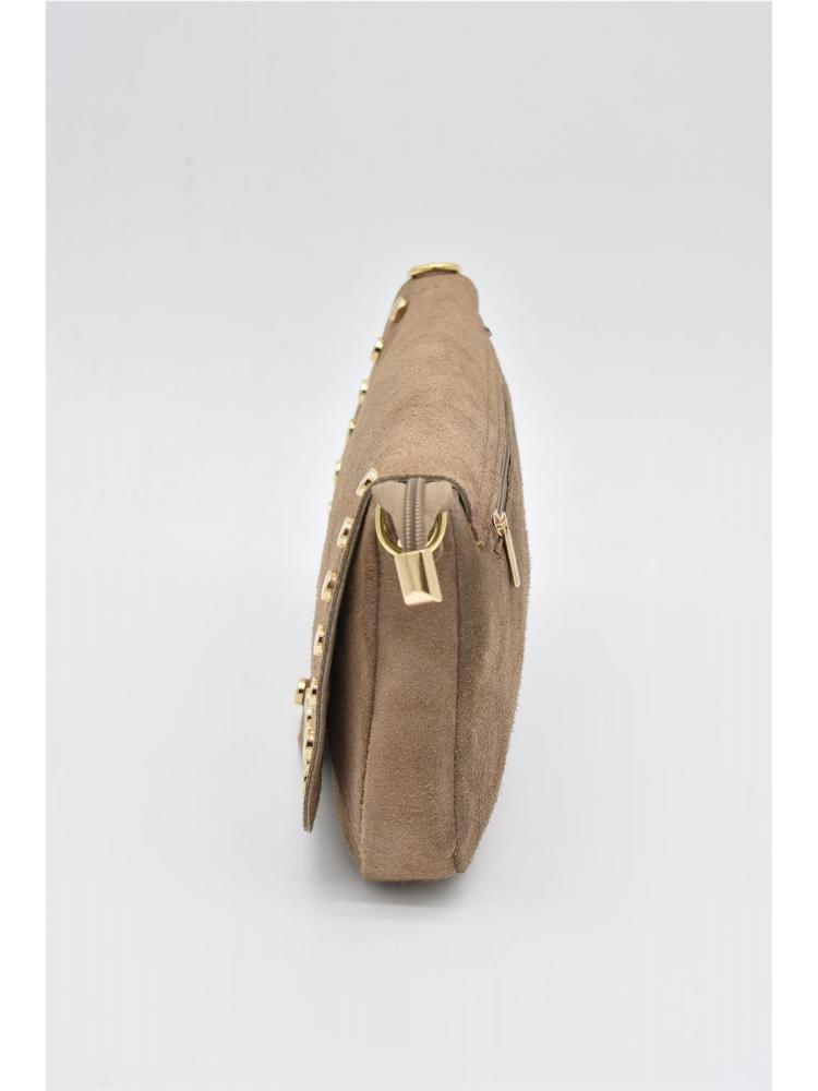 BOLSO PIEL SERRAJE TACHAS BEIGE