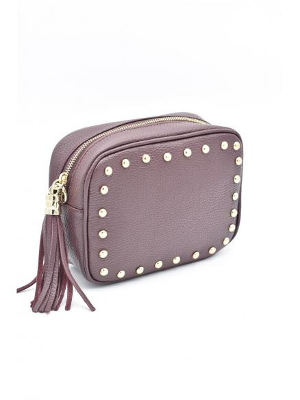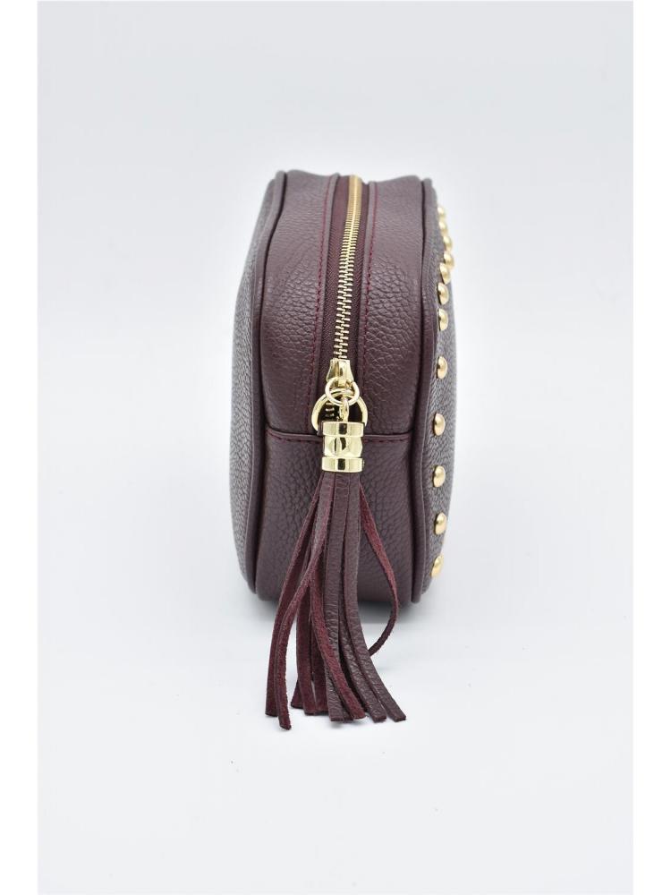 BOLSO PIEL TACHAS FLECOS VINO